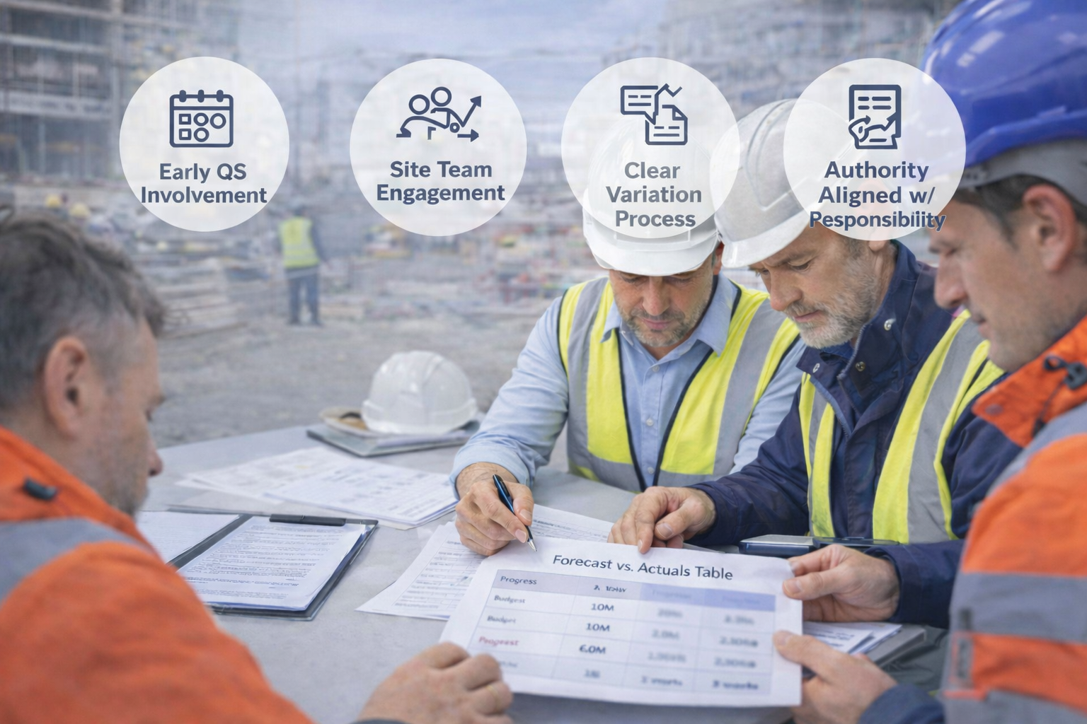 Projects that maintain commercial control share common traits. Early QS involvement. Regular engagement with site teams. Clear variation processes. Authority aligned with responsibility.
